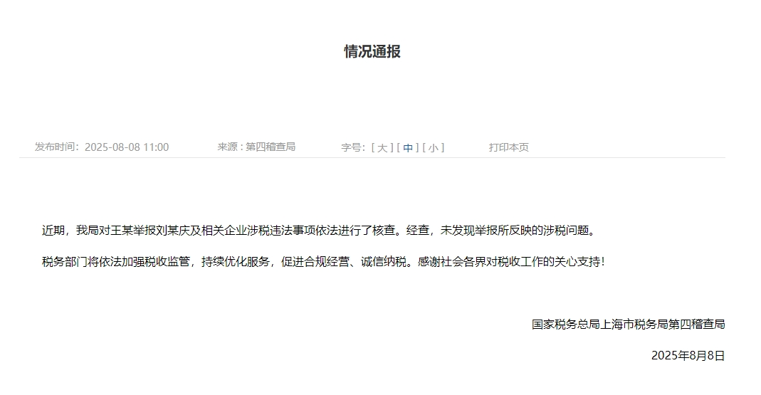 8月8日,国家税务总局上海市税务局发布情况通报: